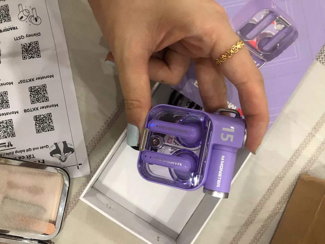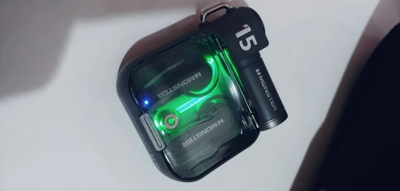 Tuy phải để dành diện tích cho khoang đựng tai nghe rộng rãi và dải led neon ở giữa, nhưng MONSTER XKT15 vẫn có thời lượng pin khá ấn tượng, lên tới 4-5 giờ sử dụng liên tục. Với mức đo 100% âm lượng, thời gian sử dụng tối đa của chiếc tai nghe không dây này có thể lên tới 4 giờ – một con số không nhỏ so với các dòng tai nghe thiết kế lộ vi mạch khác.