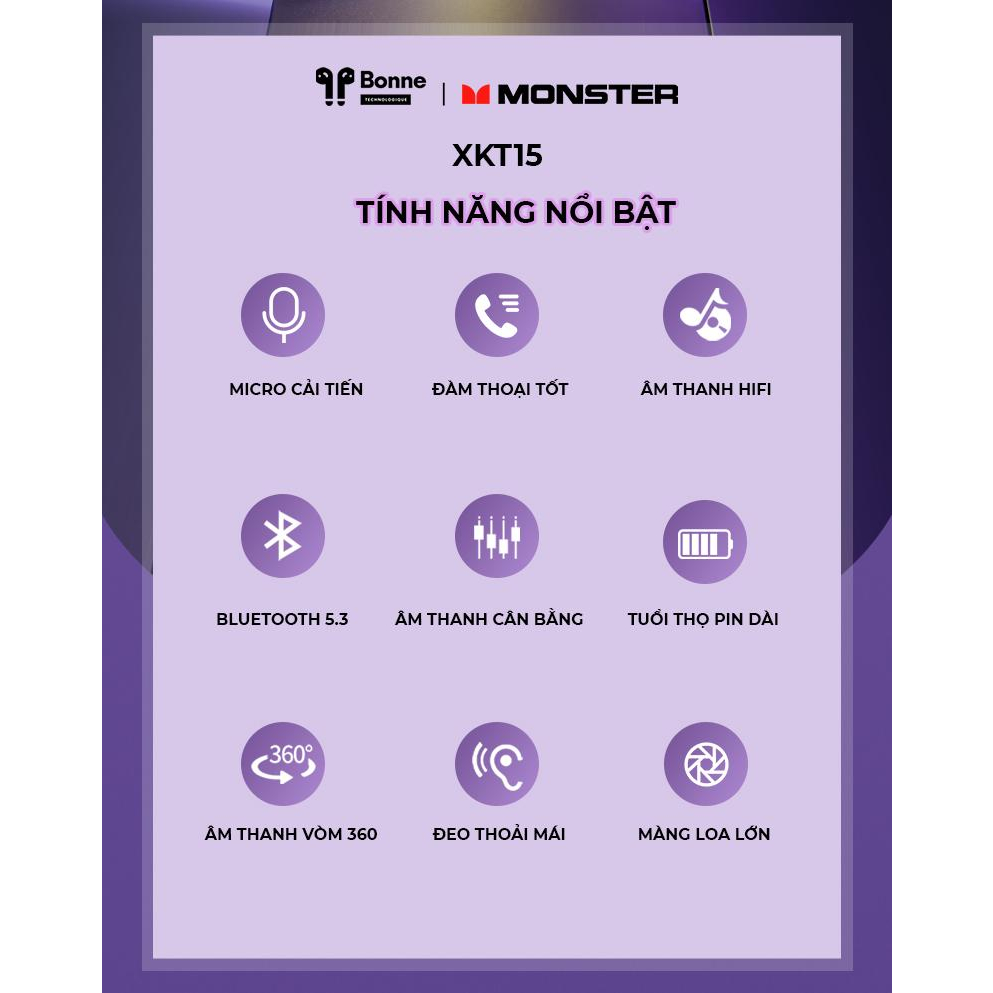 Được ra mắt vào năm 2024, và là chiếc tai nghe bluetooth mới của MONSTER, vậy nên XKT15 sở hữu trong mình những công nghệ tiên tiến và hiện đại hàng đầu. Đầu tiên là vi xử lý lõi kép Bluetooth 5.3. Với chip xử lý bluetooth 5.3 chạy trên tiến trình mới, XKT15 được đánh giá là một trong những chiếc tai nghe có kết nối nhanh và ổn định hàng đầu trong tầm giá. Phạm vi kết nối của XKT15 lên tới 15m, độ ổn định cao, giúp cho người dùng sử dụng chiếc tai nghe không dây này bỏ qua nỗi lo về kết nối.