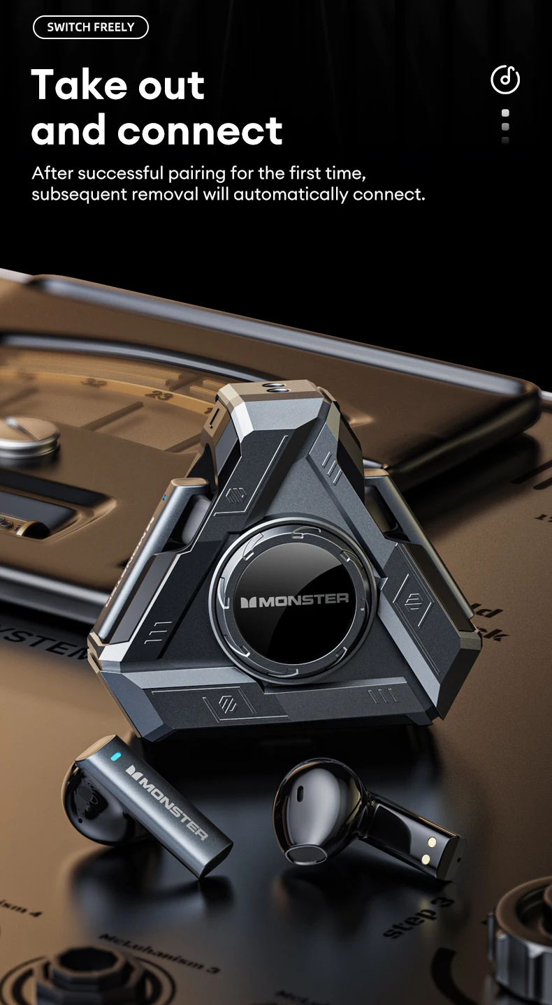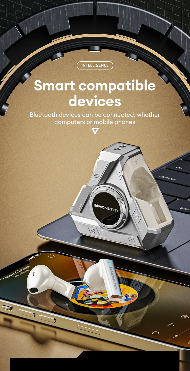 Tai Nghe Monster Fingertip Gyroscope Bluetooth 5.4 thiết kế dạng con quay